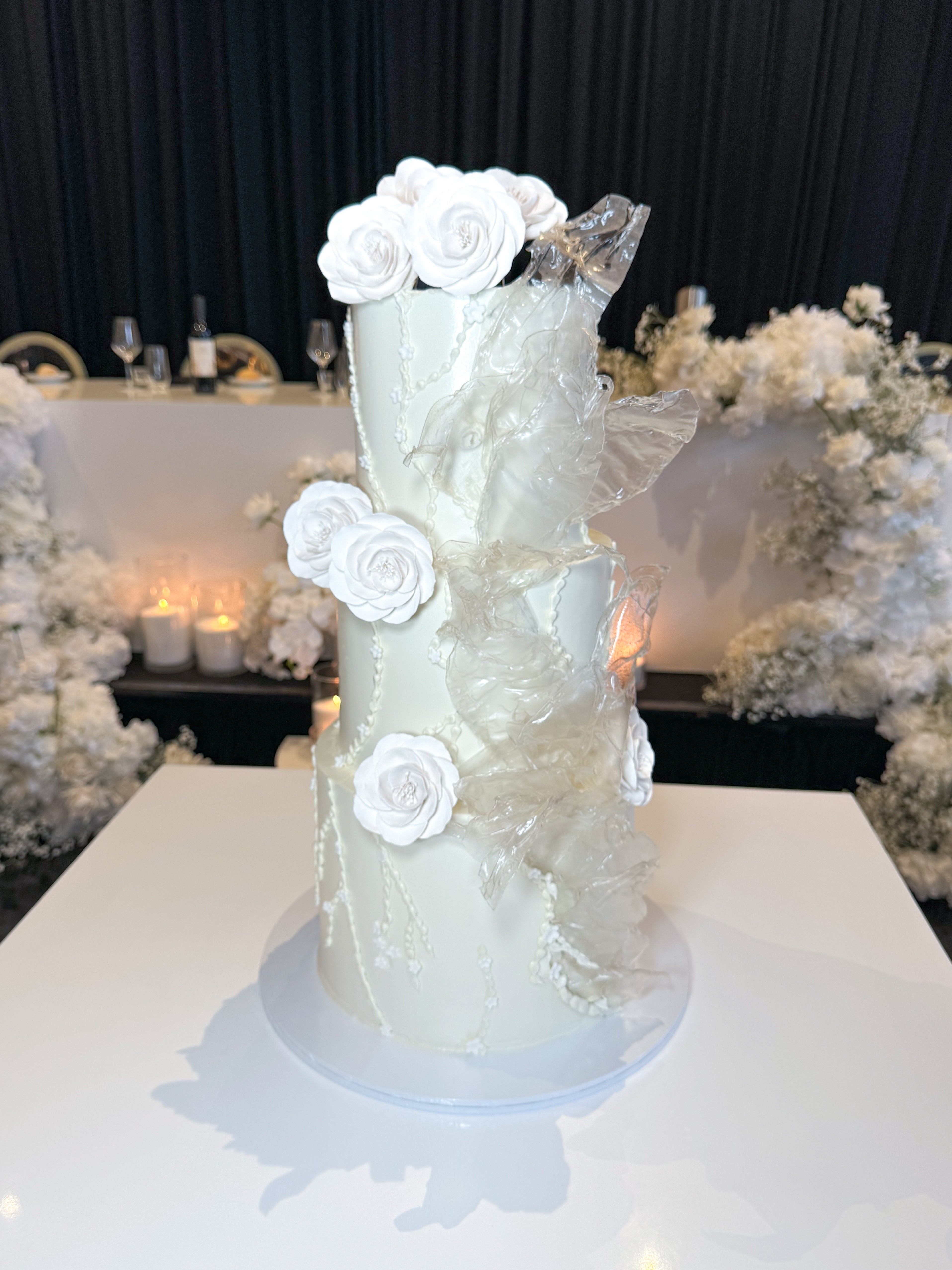 Every cake is fully customisable, we take inspiration from your wedding colours, reception styling, and everything that makes your day unique, creating a design that truly reflects you as a couple.