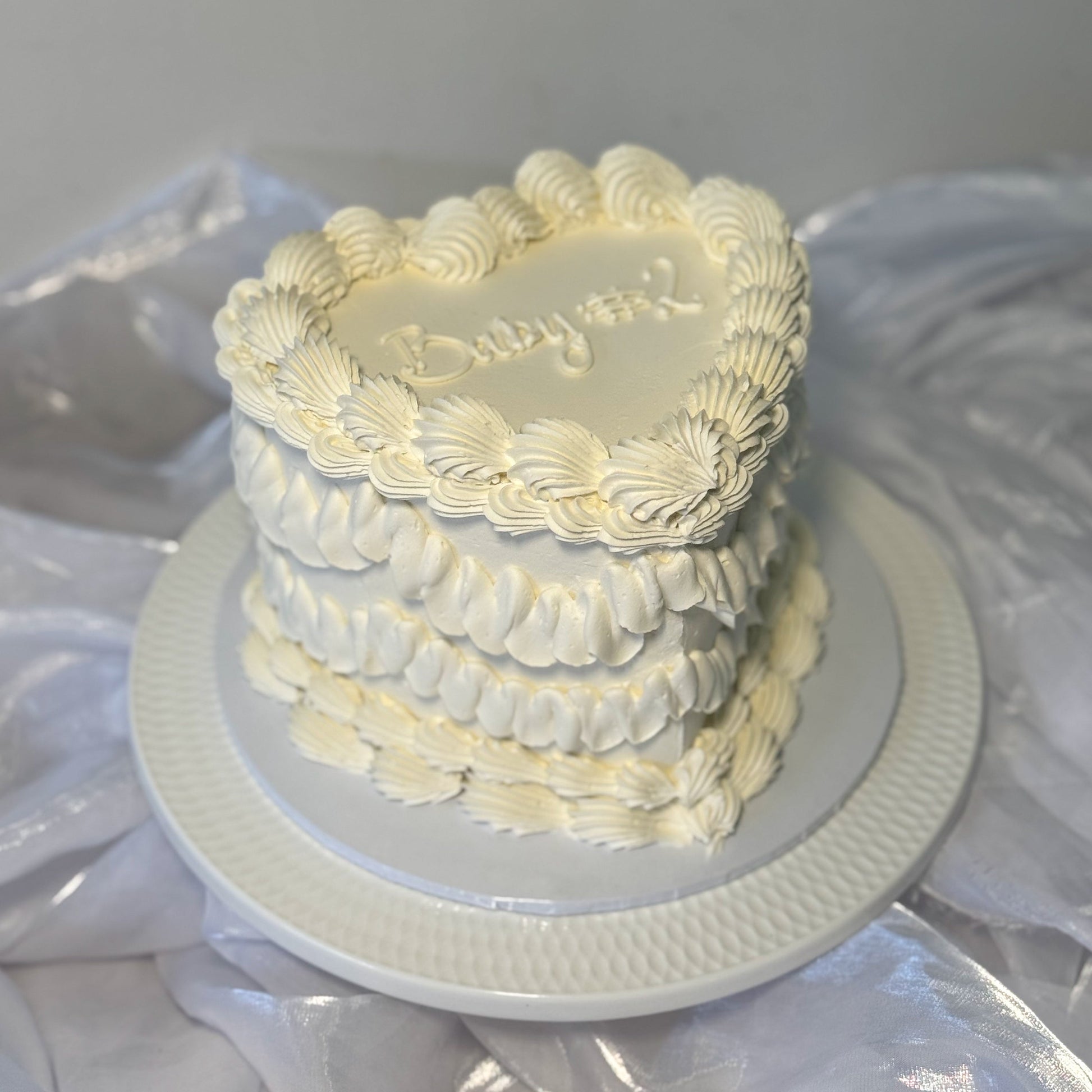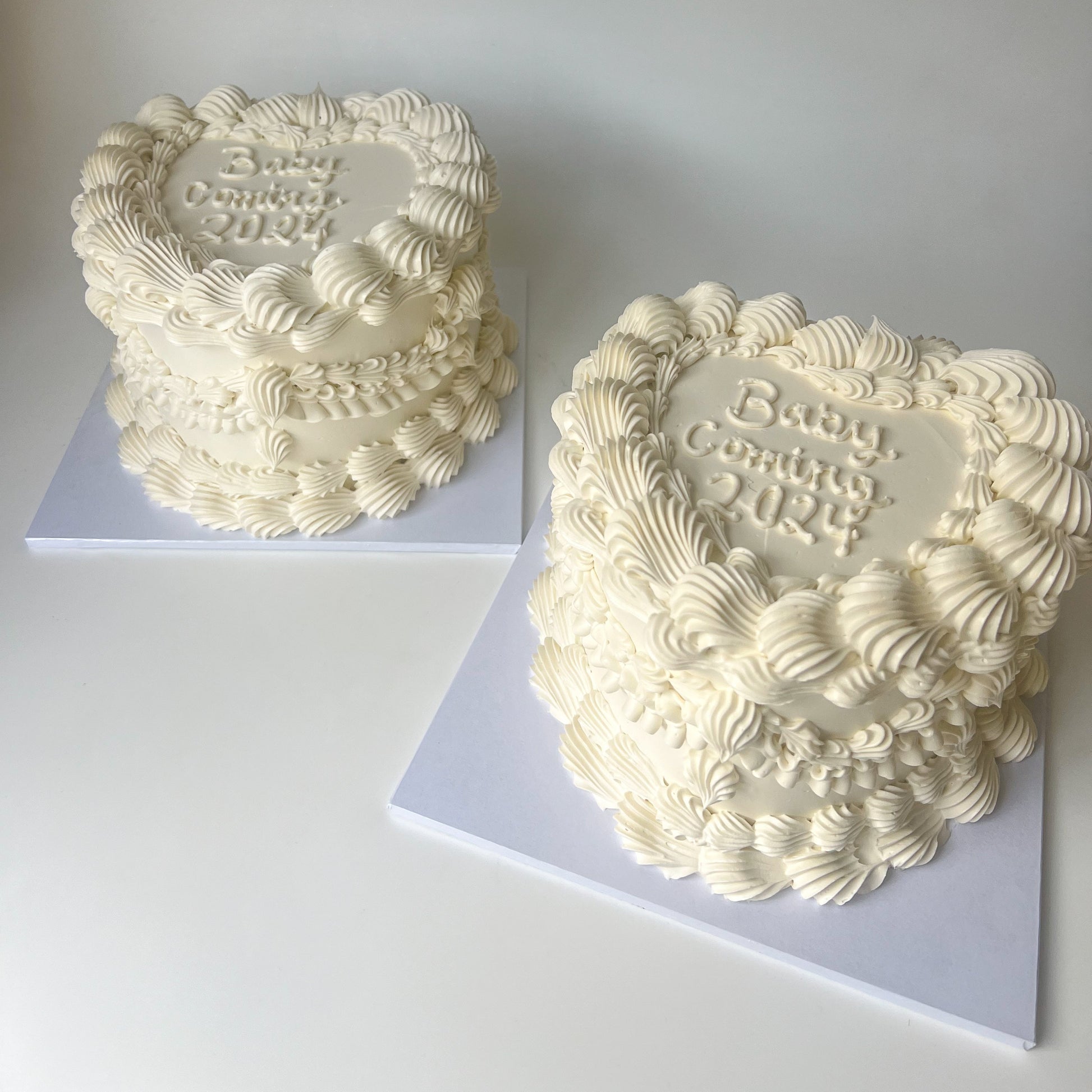 Small white vintage cake, perfect for an intimate gender reveal or for a bigger party.